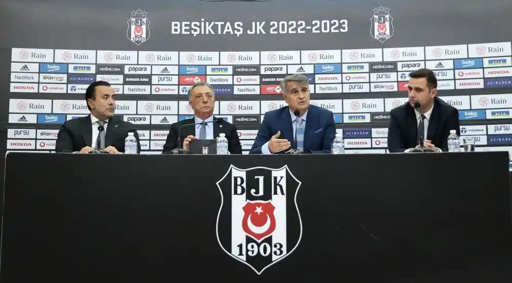 Futbol A Takımımızın Teknik Direktörlüğüne getirilen Şenol Güneş için BJK Nevzat Demir Tesisleri’nde; Başkanımız Ahmet Nur Çebi, Asbaşkanımız Emre Kocadağ ve Beşiktaş Futbol A.Ş. Genel Müdürümüz ve Sportif Direktörümüz Ceyhun Kazancı’nın katılımlarıyla bir imza töreni düzenlendi. Başkanımız Ahmet Nur Çebi, törende yaptığı konuşmada şunları söyledi: “Şenol Güneş’i huzurlarınızda imza atmaya davet ettik. Bizimle beraber çalışmayı
